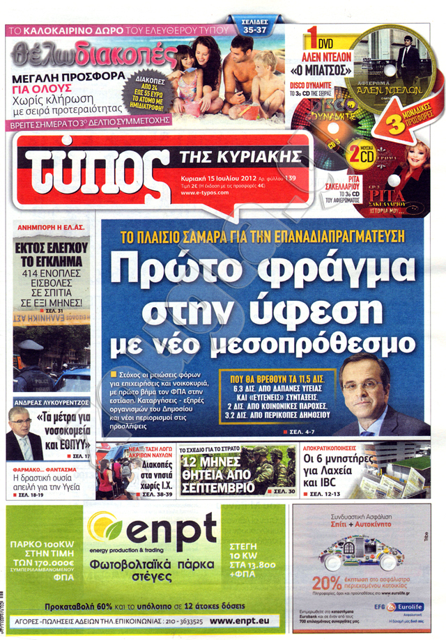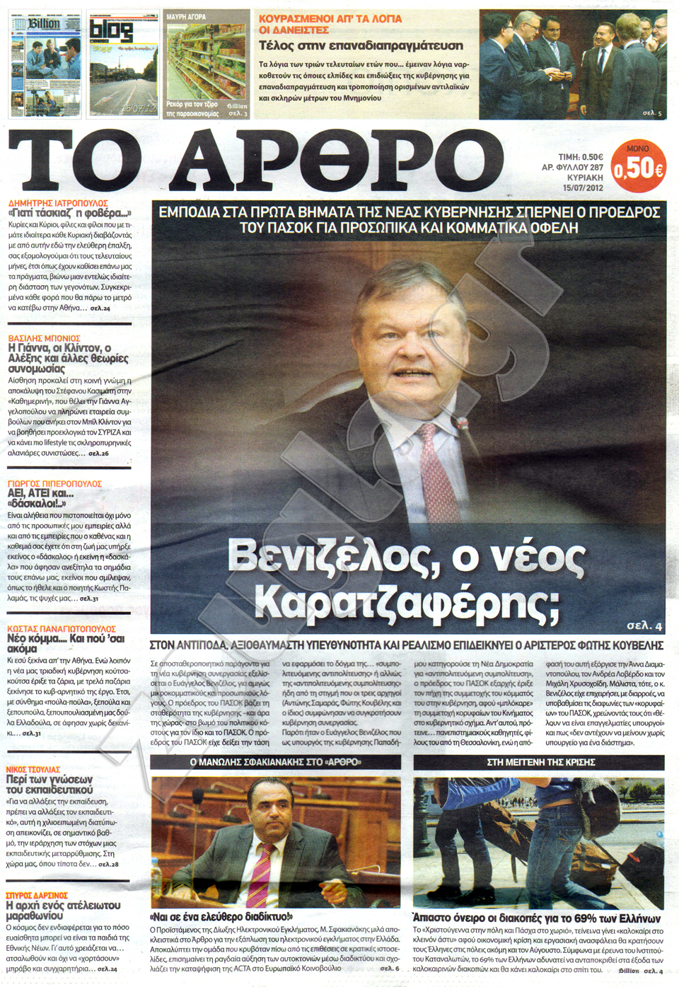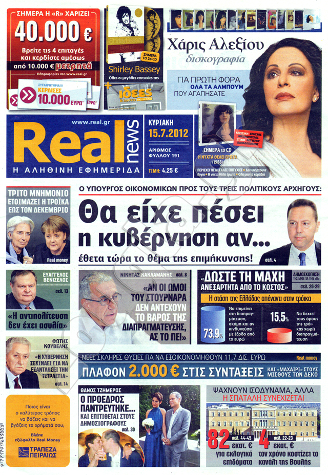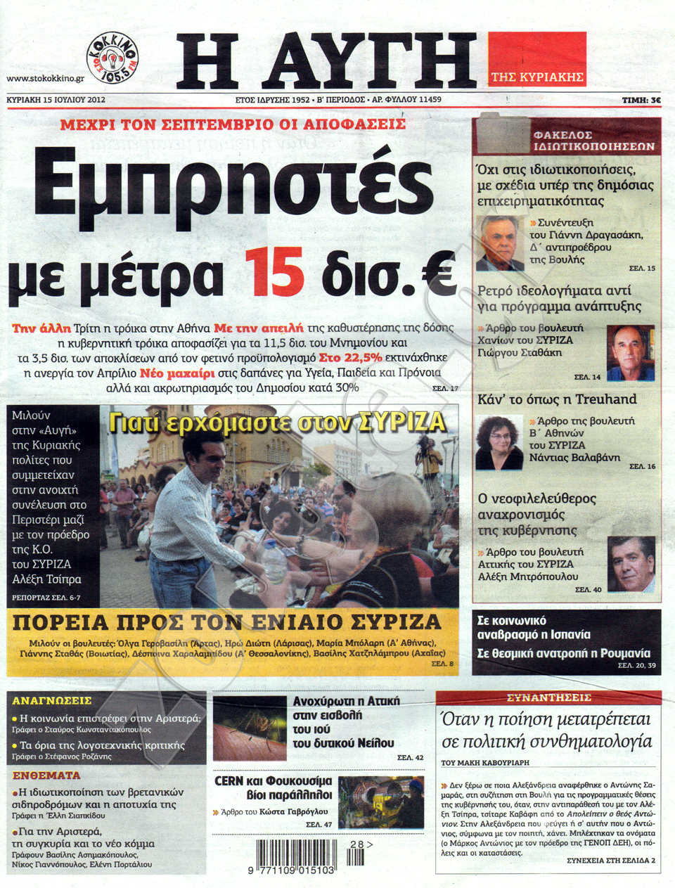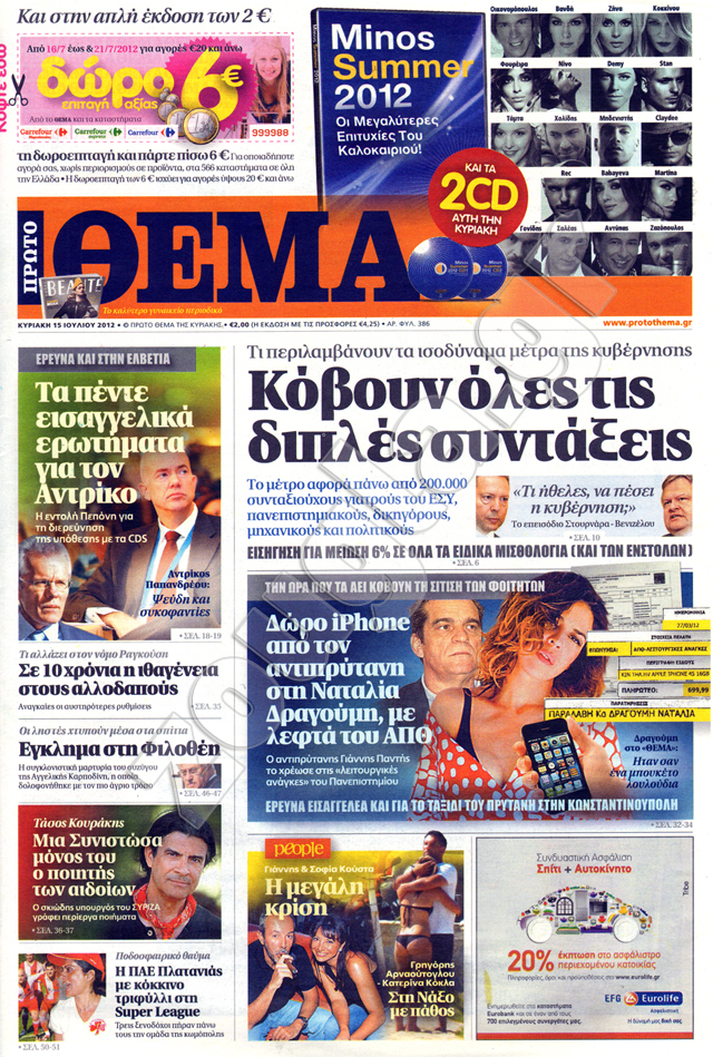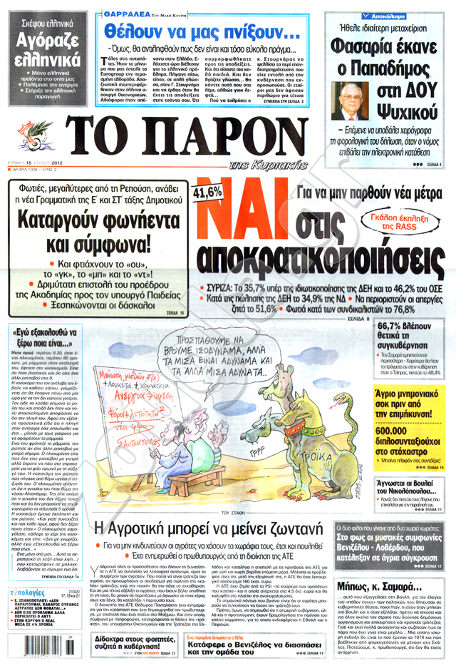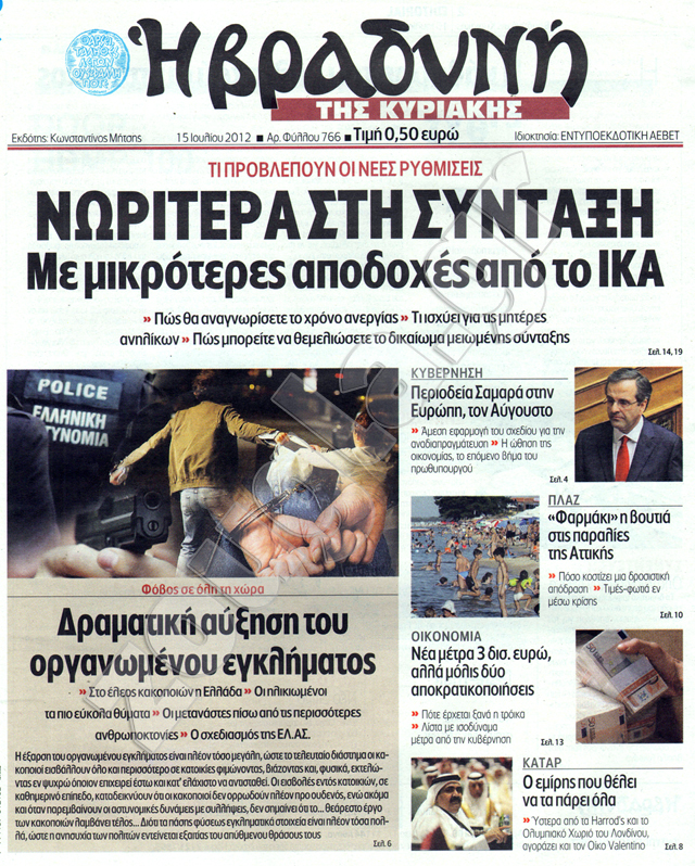 Διαβάστε στη zougla.gr τα πρωτοσέλιδα των κυριακάτικων εφημερίδων.