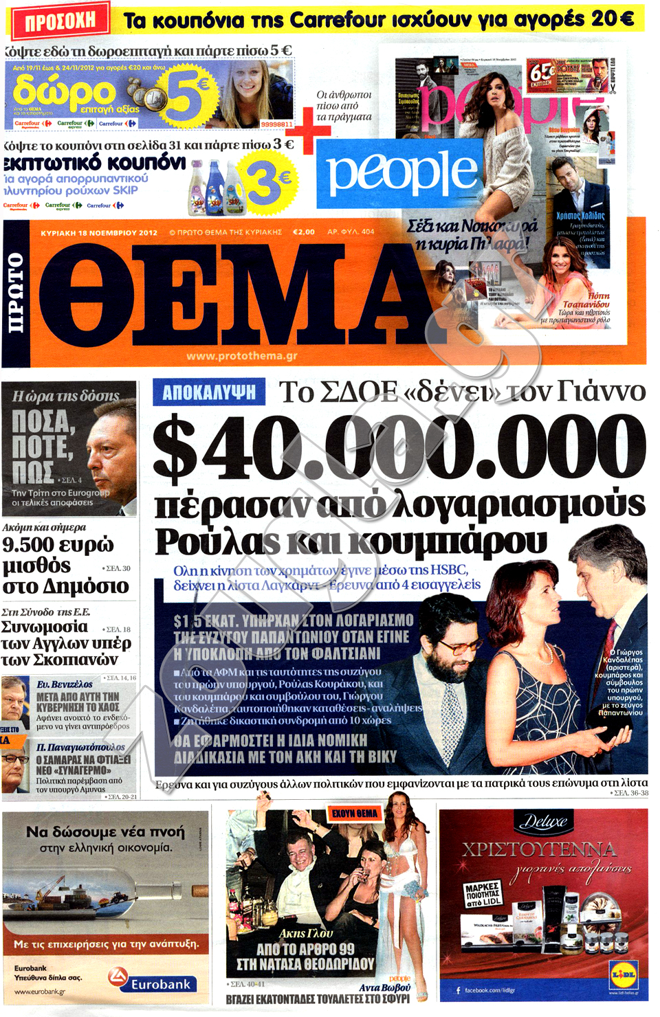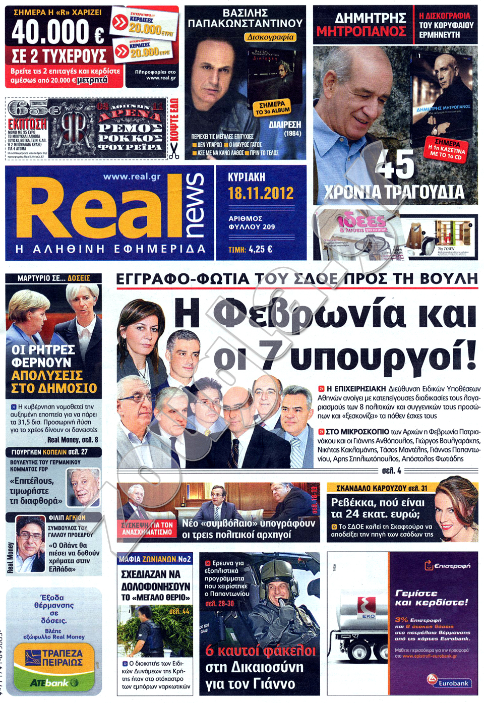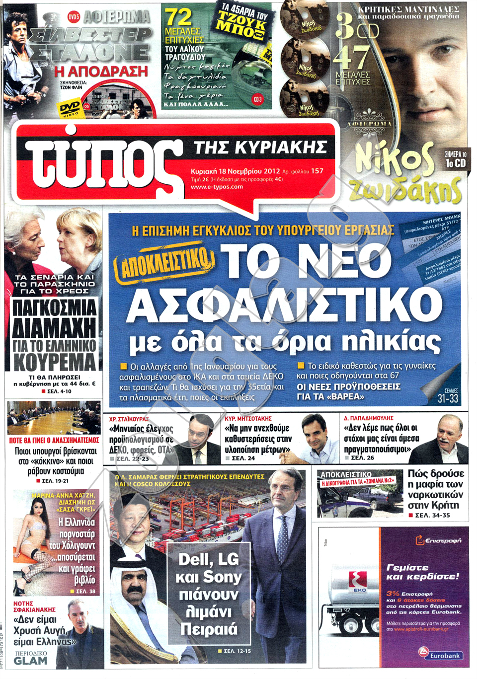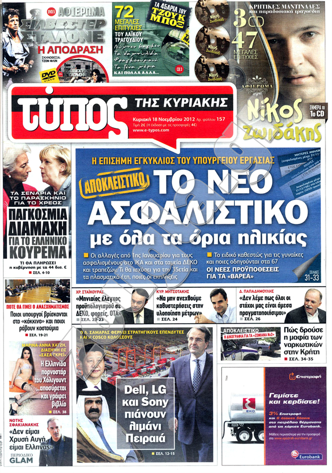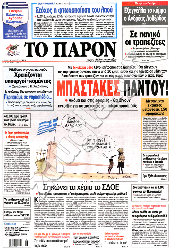 Τα πρωτοσέλιδα των κυριακάτικων εφημερίδων στη zougla.gr