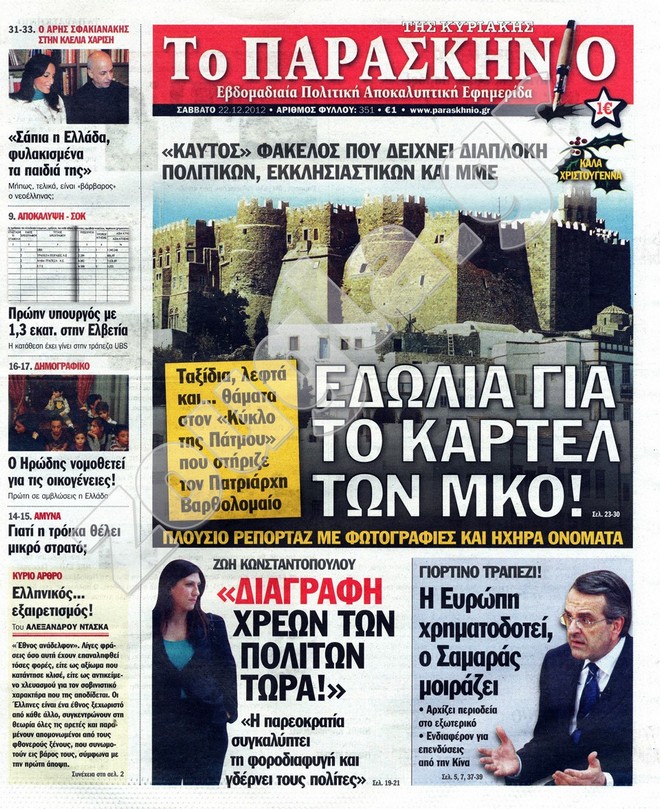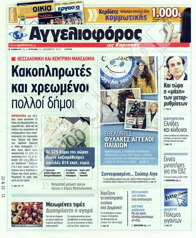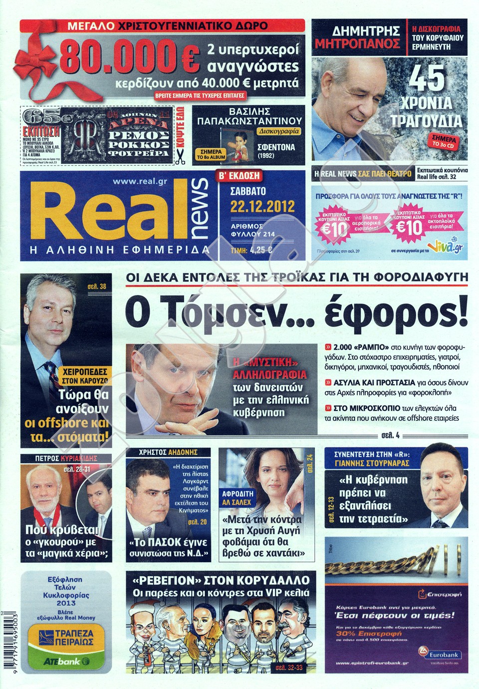 Τα πρωτοσέλιδα των εφημερίδων του Σαββατοκύριακου 22 και 23 Δεκεμβρίου