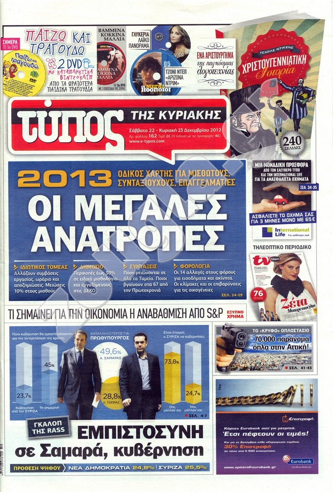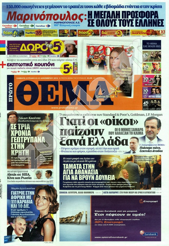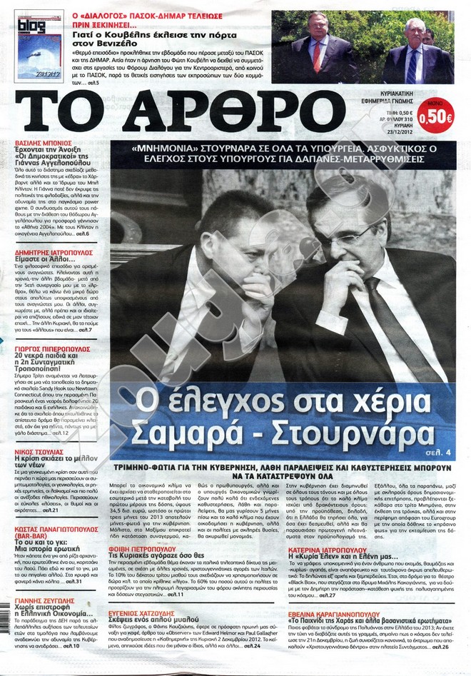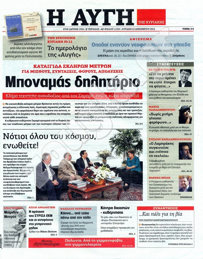 Διαβάστε στη zougla.gr τα πρωτοσέλιδα του Σαββατοκύριακου 22-23 Δεκεμβρίου...