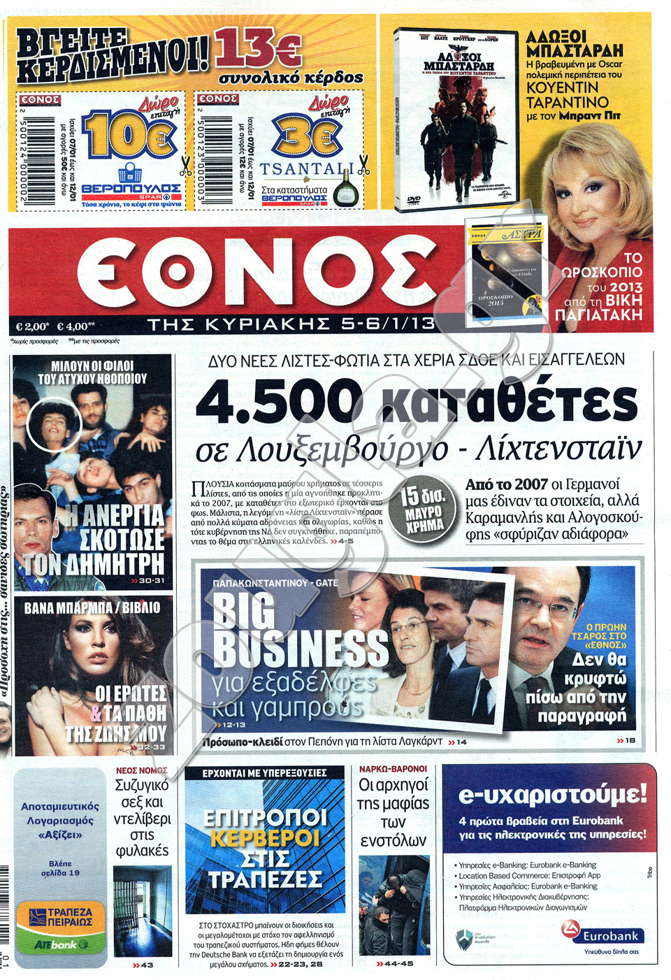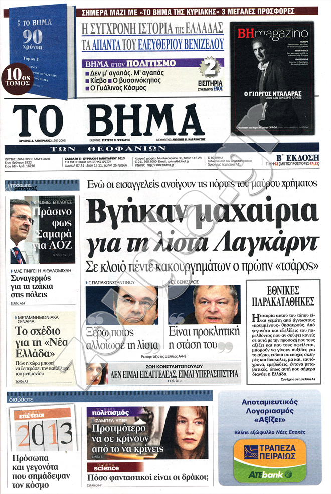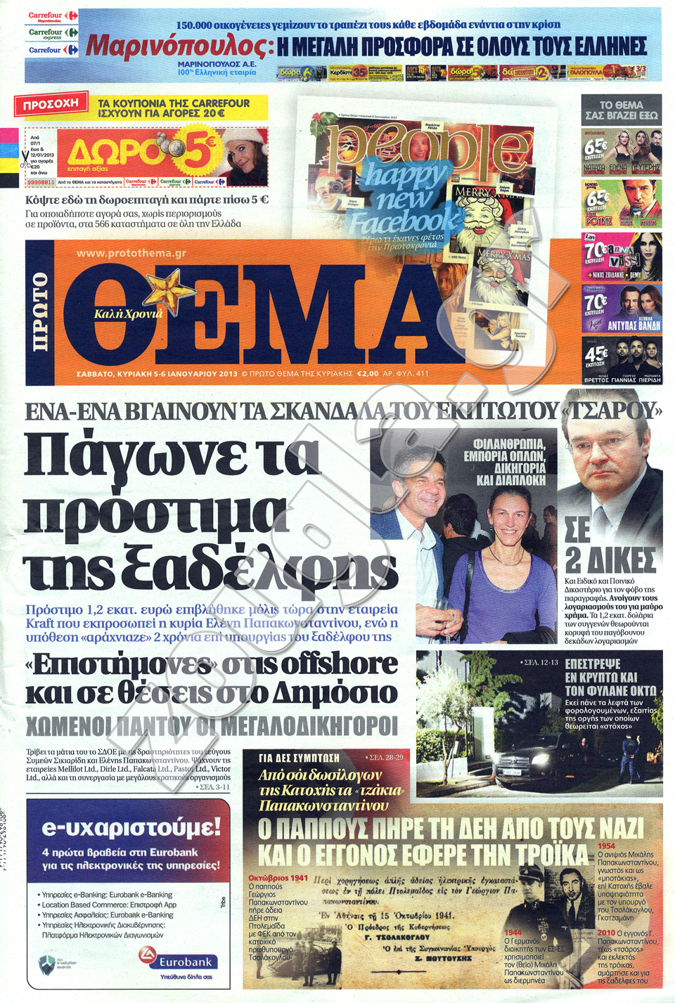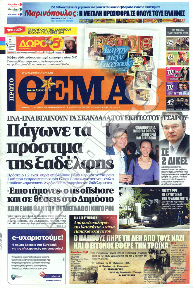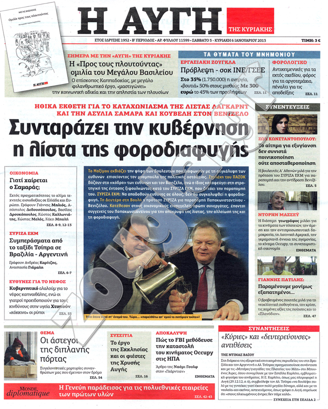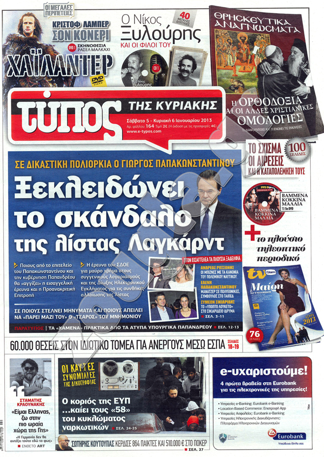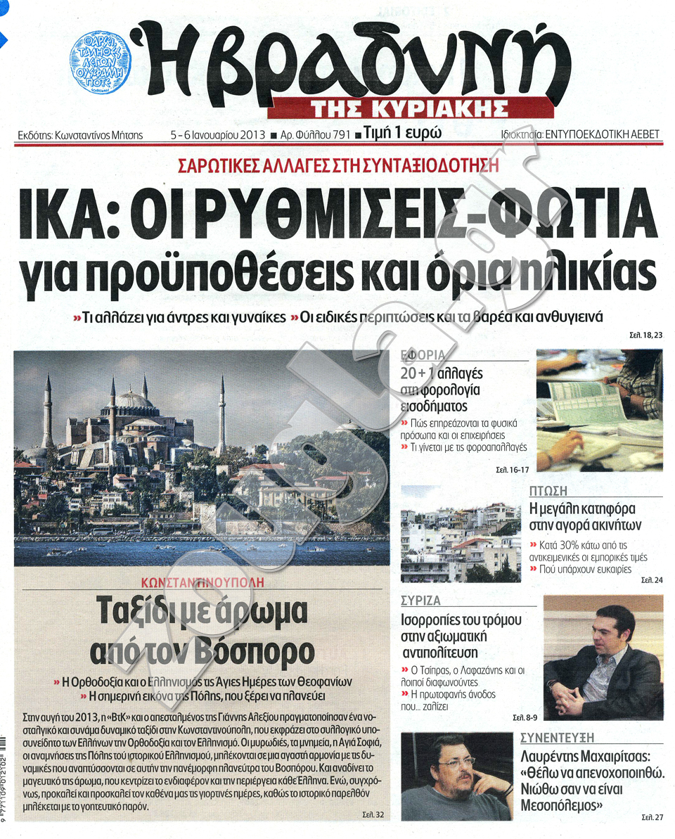 Διαβάστε στη zougla.gr τα πρωτοσέλιδα των κυριακάτικων εφημερίδων, που αυτή την εβδομάδα κυκλοφοορύν Σάββατο.