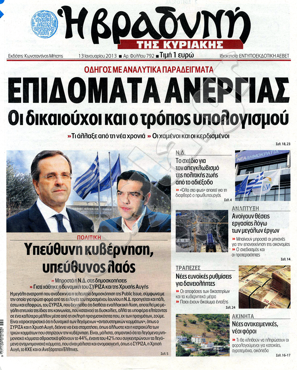 Διαβάστε στη zougla.gr τα πρωτοσέλιδα των κυριακάτικων εφημερίδων.