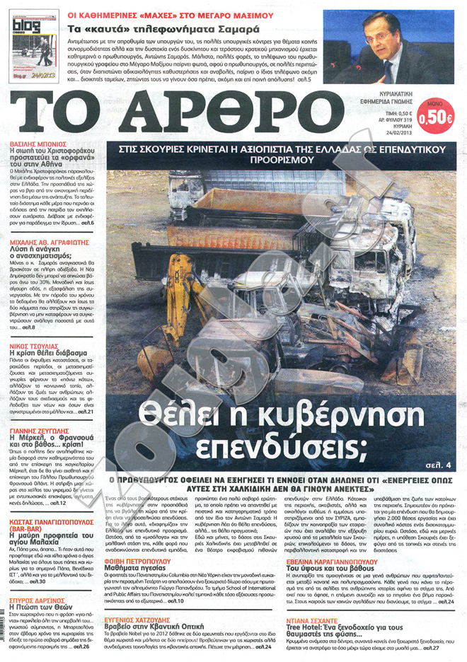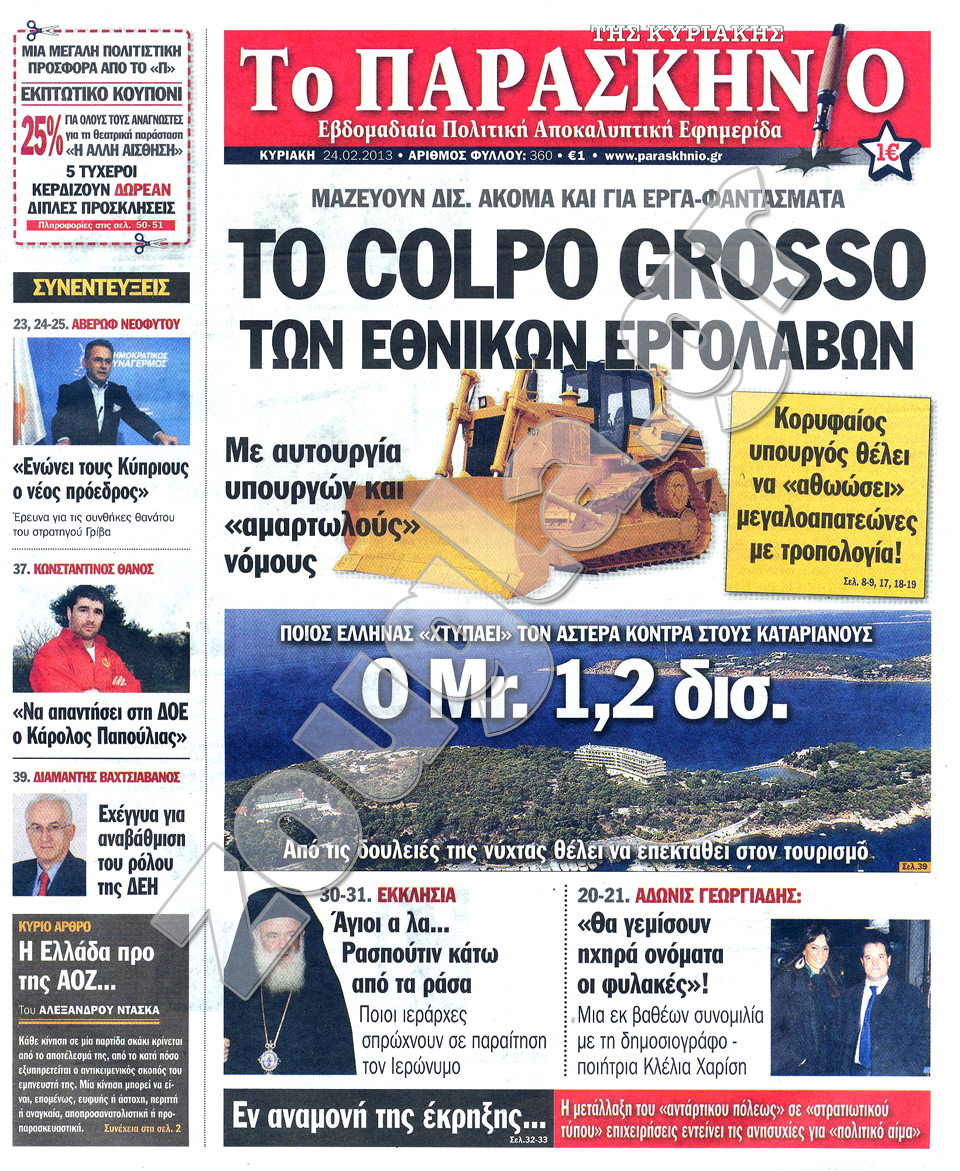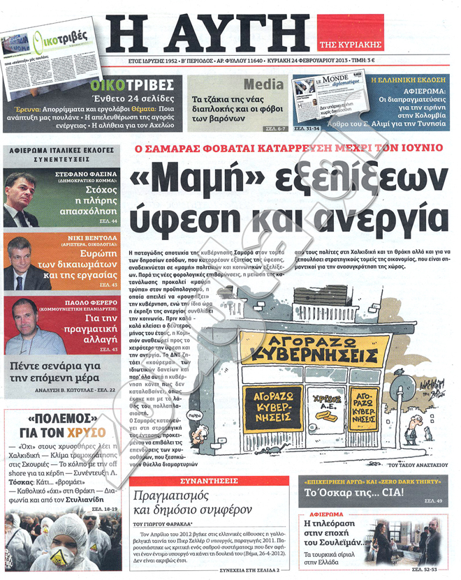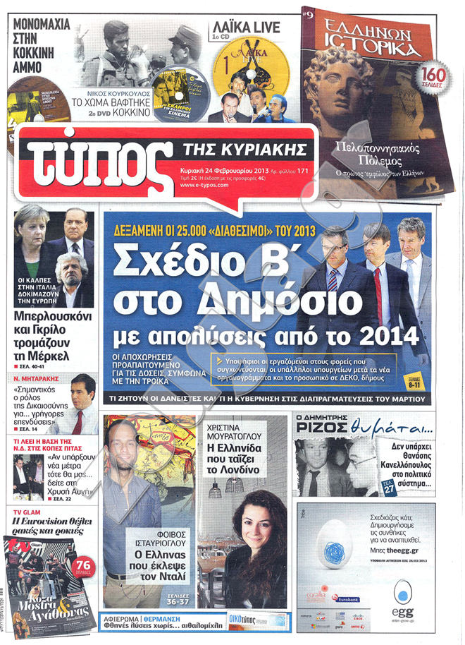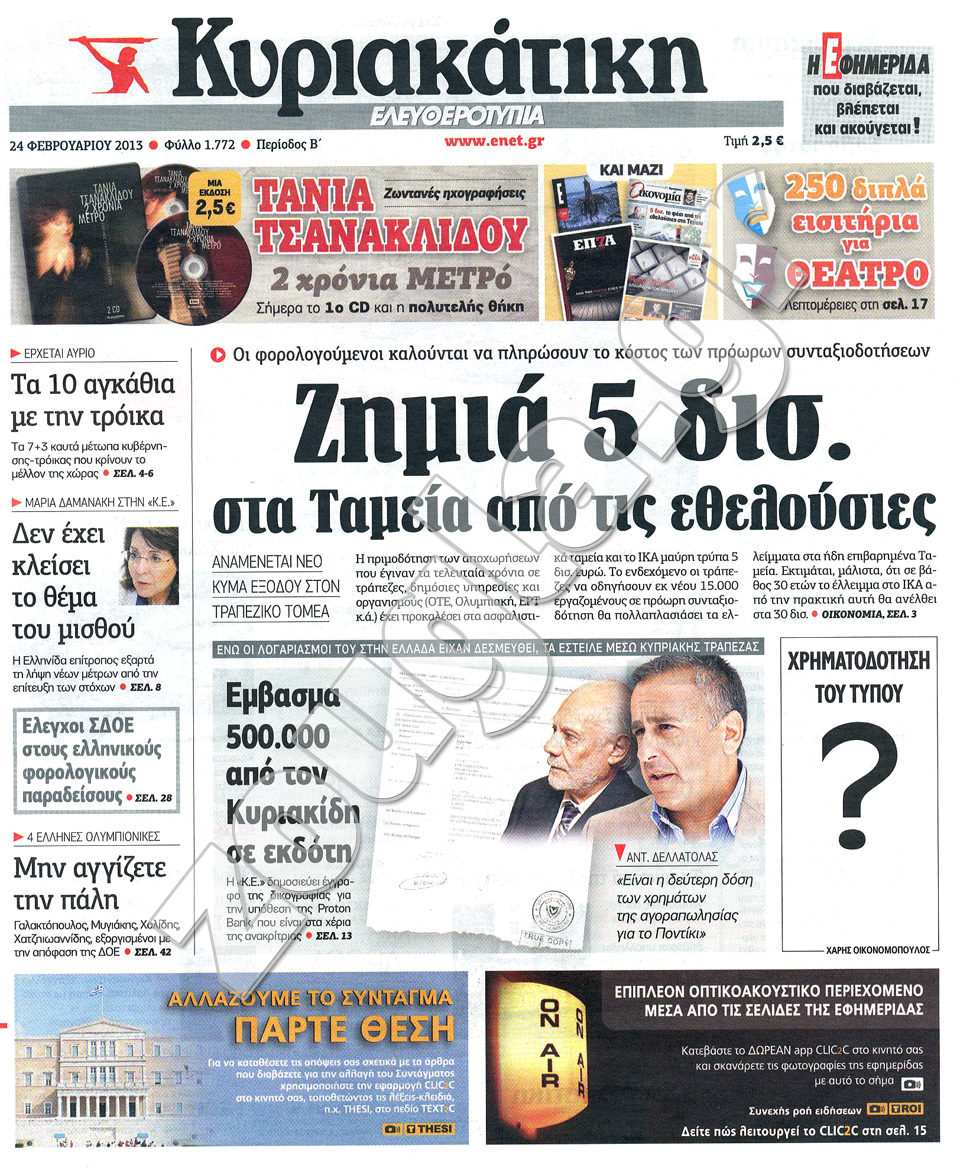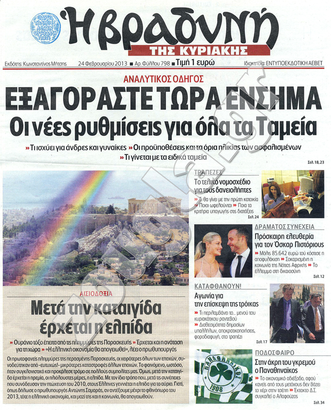 Τα πρωτοσέλιδα των κυριακάτικων εφημερίδων στη zougla.gr...