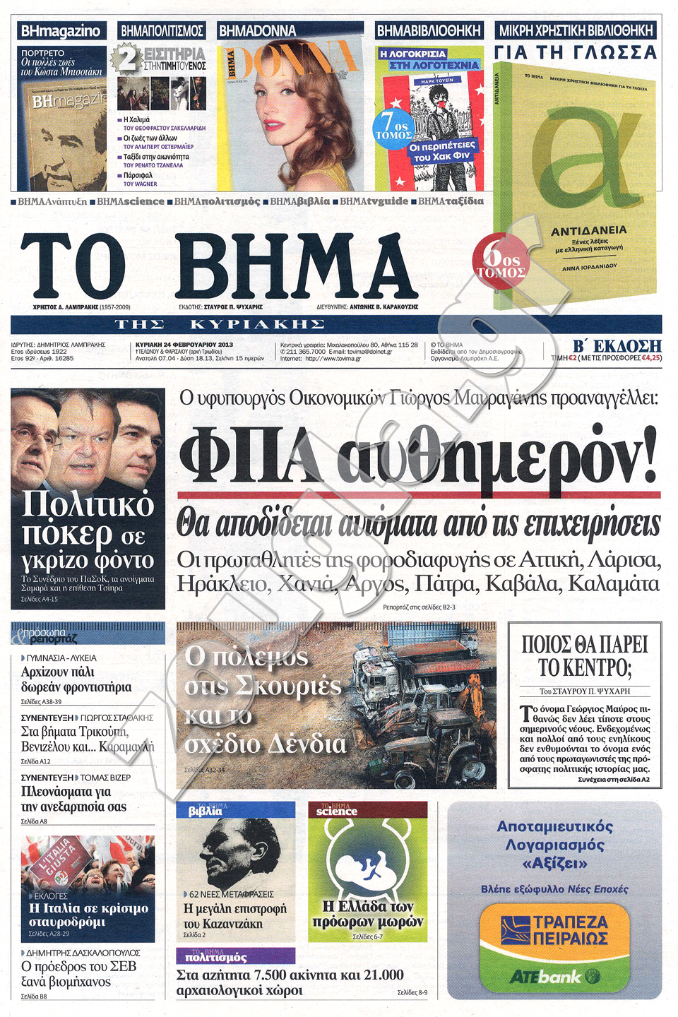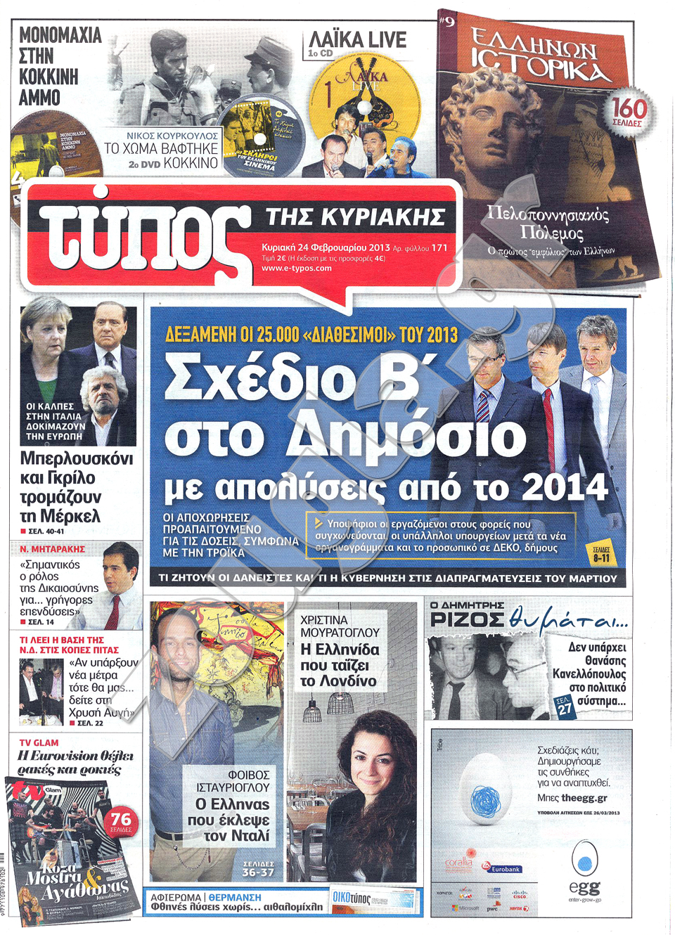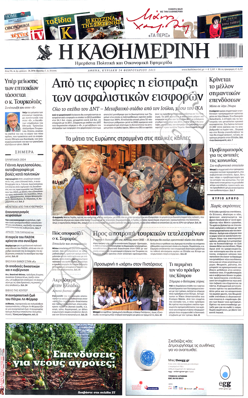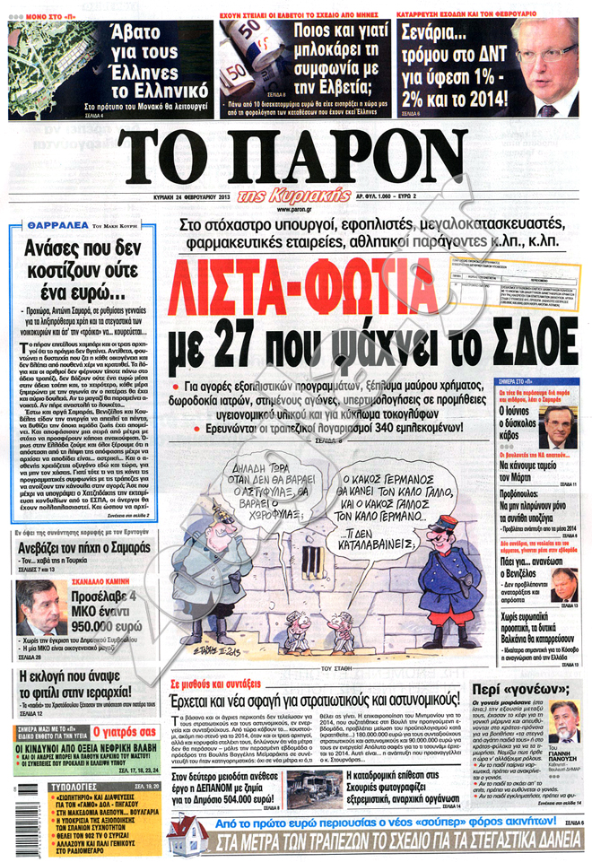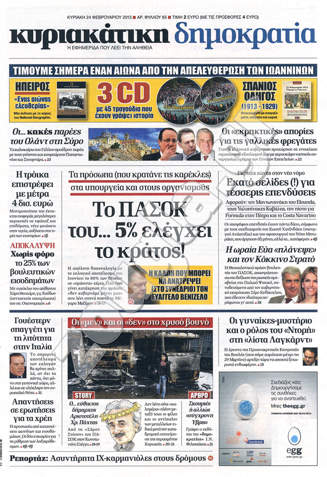 Τα πρωτοσέλιδα των κυριακάτικων εφημερίδων στη zougla.gr...