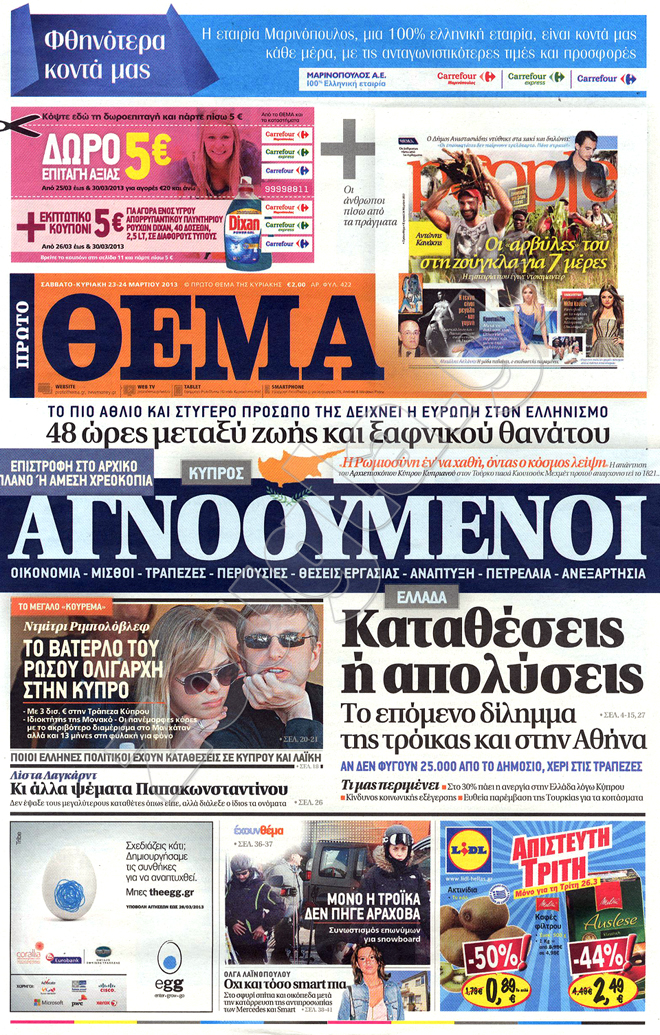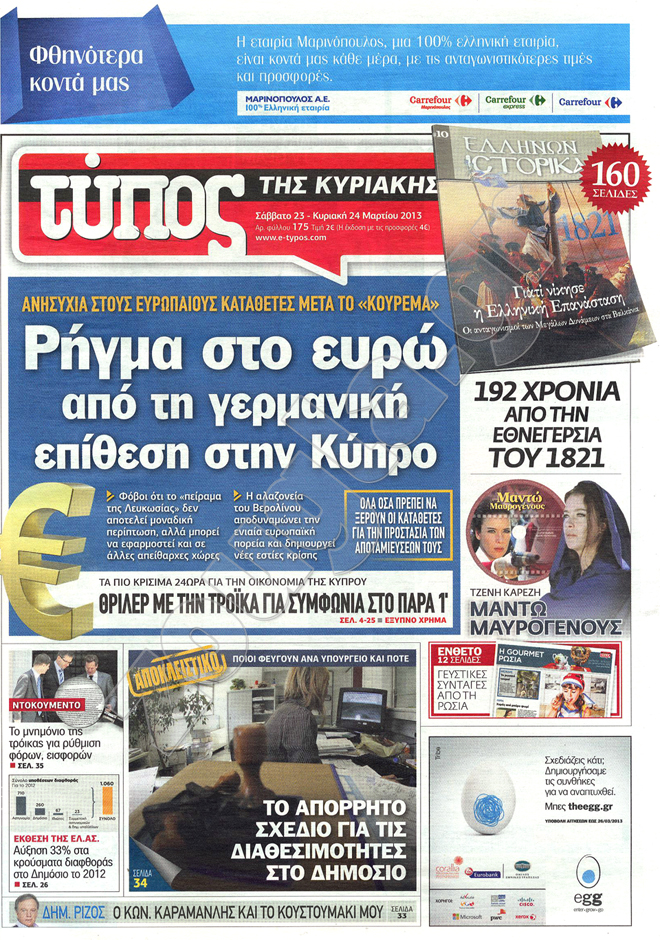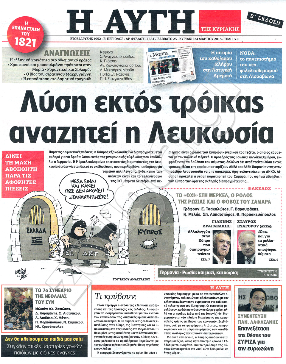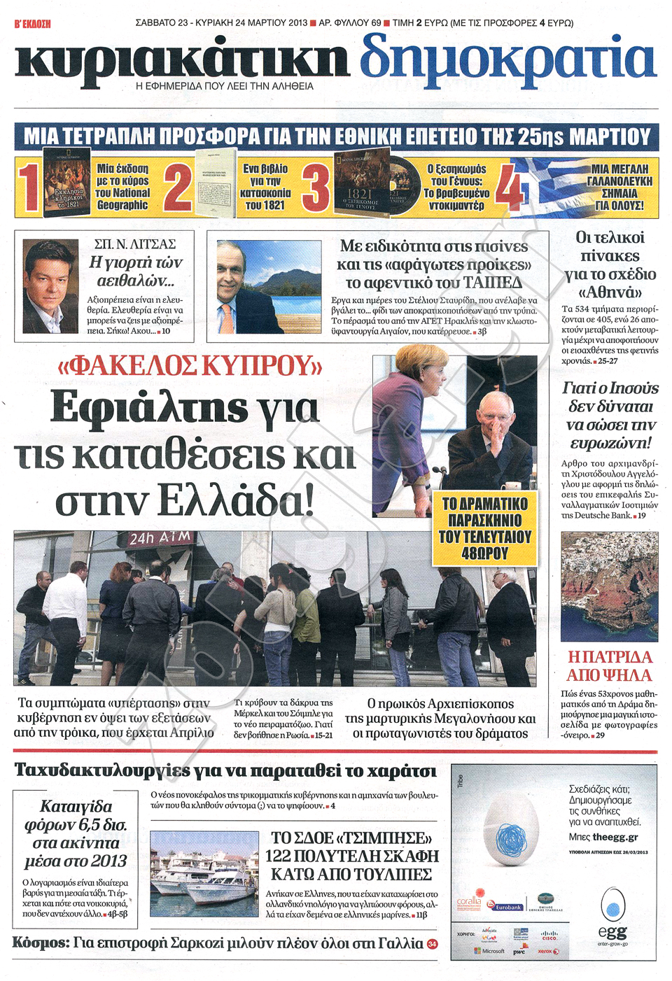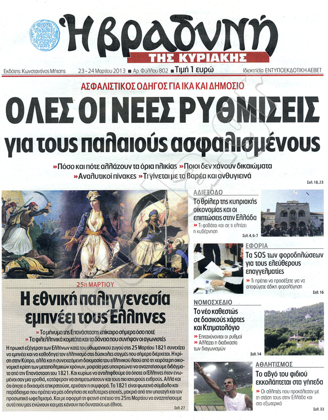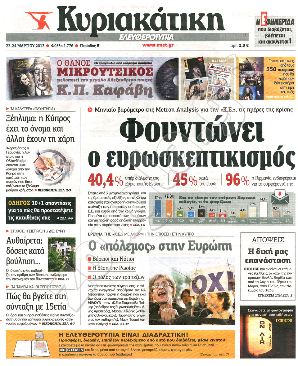 Σημείωση: Η Καθημερινή της Κυριακής κυκλοφορεί κανονικά την Κυριακή.