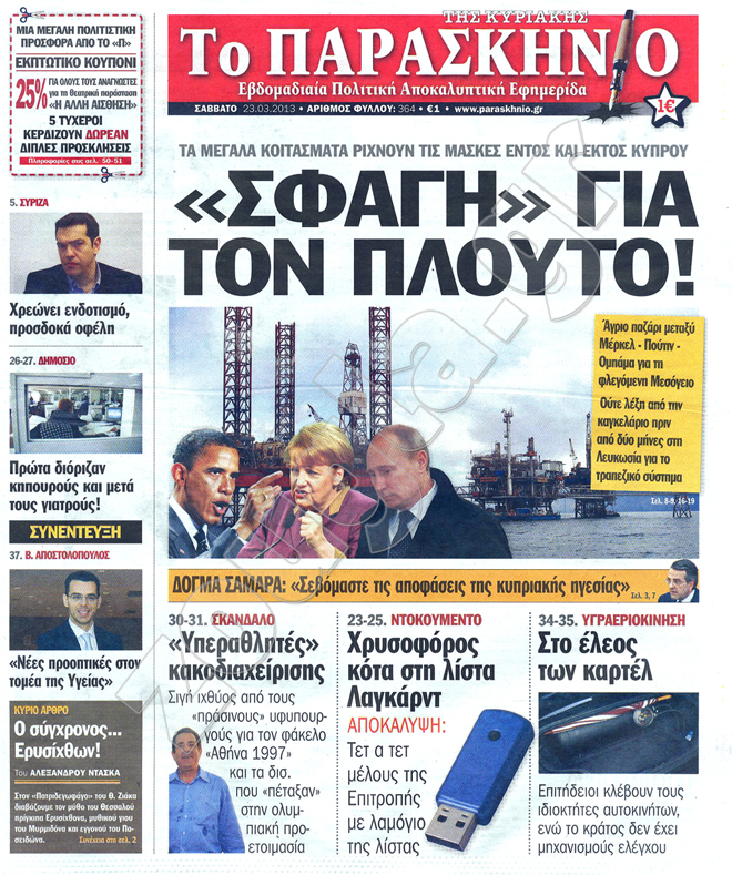 Διαβάστε στη zougla.gr τα πρωτοσέλιδα των κυριακάτικων εφημερίδων, που αυτή την εβδομάδα κυκλοφορούν Σάββατο.