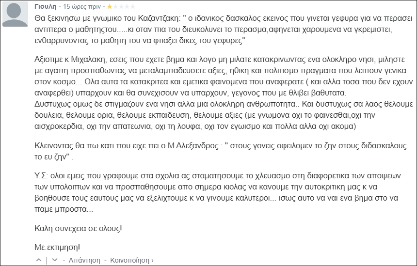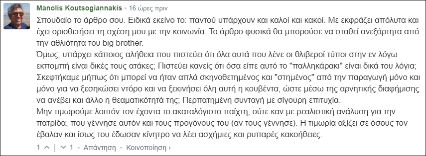 Ο Γιώργος Μιχάλακας απαντά στα σχόλια για το χθεσινό «άρθρο-τομή»