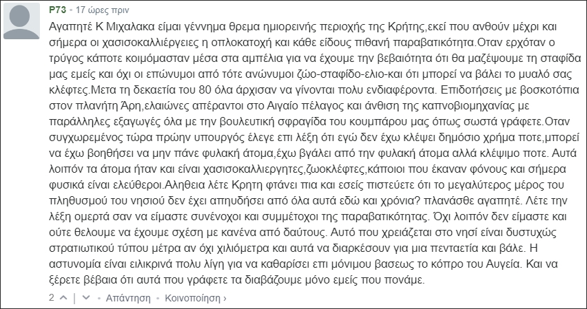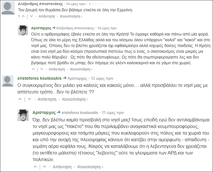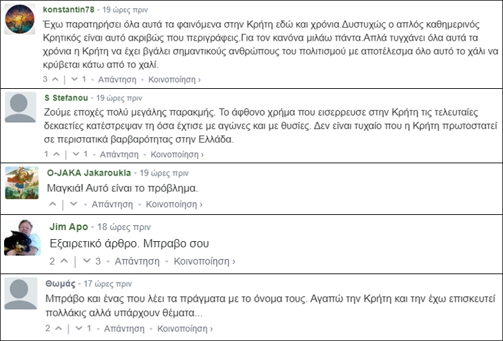 υπάρχουν πολλά σχόλια από Κρητικούς που συμφωνούν με το άρθρο μου…