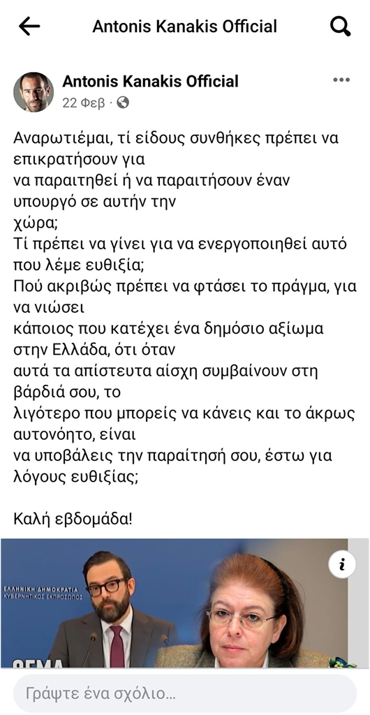 ε, τι άλλο θέλετε, κυρία Μενδώνη μου, για να παραιτηθείτε για λόγους ευθιξίας..;