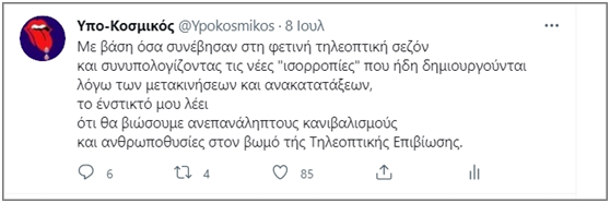 στον βωμό τής Τηλεοπτικής Επιβίωσης.».