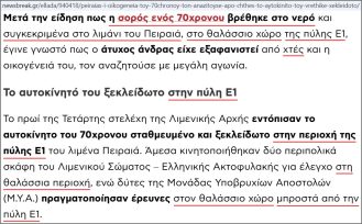 1) «…η σορός ενός 70χρονου βρέθηκε στο νερό…»