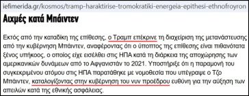Βάσει των γραφομένων, ο Τραμπ καταλογίζει ευθύνη στην κυβέρνηση τού Τραμπ.