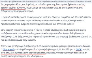 Ο Ολυμπιακός καταλαμβάνει «μία ιδιαίτερα υψηλή θέση»