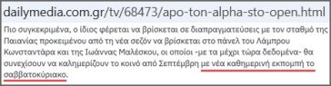 Σύμφωνα με δημοσίευμα τού … (αναφορά στο «Μέσο»),