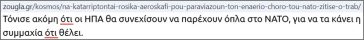 «(Ε)τόνισε ακόμη πως οι Η.Π.Α. θα συνεχίσουν να παρέχουν όπλα στο “Ν.Α.Τ.Ο.”,