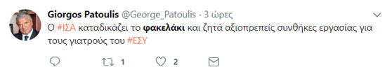 όπου -όπως θα διαβάσατε και στο tweet που ανήρτησε ο πρόεδρός του, ο κύριος Γιώργος Πατούλης- καταδικάζει το «φακελάκι» και συνάμα ζητεί αξιοπρεπείς συνθήκες εργασίας.
