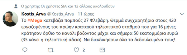 εκπροσωπούνται για μένα «Οι Εργαζόμενοι τού “MEGA”»!