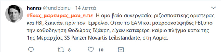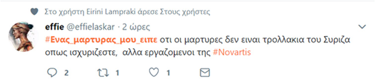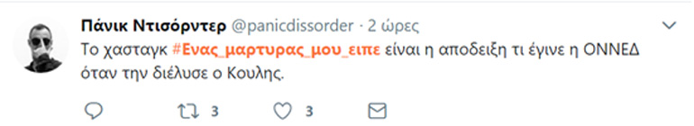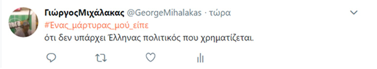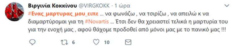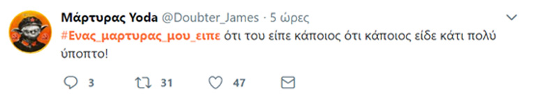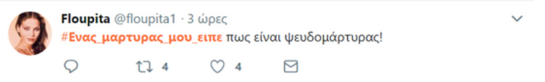 αρκούμαι να αναφερθώ στο καταπληκτικά αβανταδόρικο tweet που άφησα τελευταίο: «Ένας μάρτυρας μού είπε πως είναι ψευδομάρτυρας».