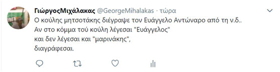 Το «Αντώναρος» δεν είναι ναnoorιστικό επώνυμο.