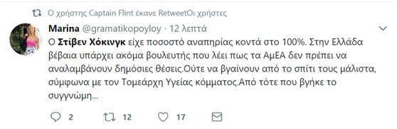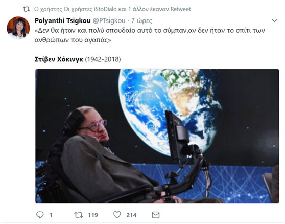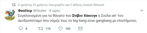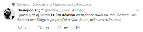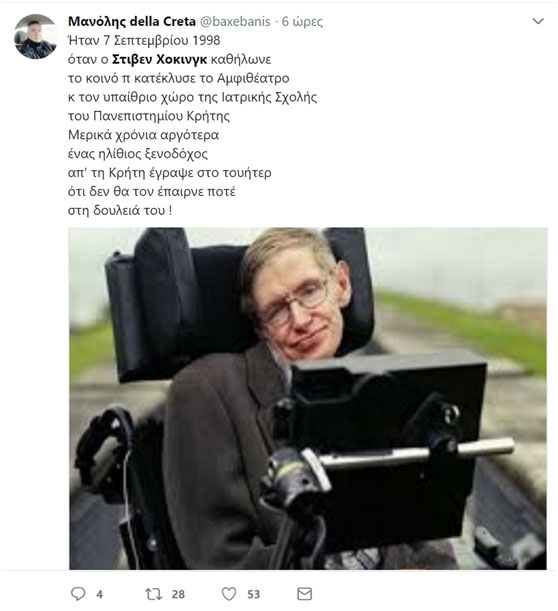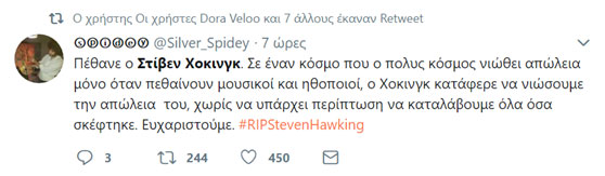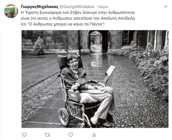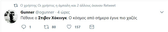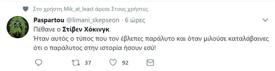 «Πέθανε ο Στίβεν Χόκινγκ. Ο κόσμος από σήμερα έγινε πιο χαζός.».