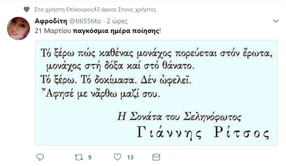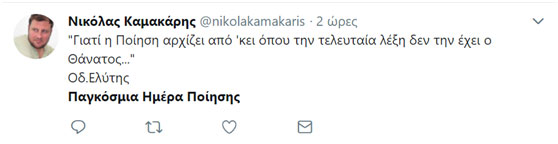 «Παγκόσμια Ημέρα Ποίησης» σήμερα,