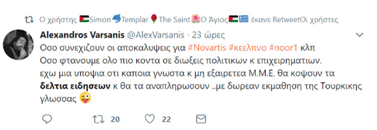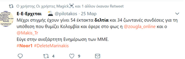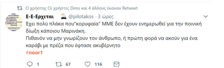 μετά από την εξέλιξη στην εμπλοκή τού Βαγγέλη Μαρινάκη με το «Noor1»,