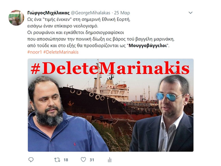 «Μουγγοβάγγελοι» (διασκευή τής λέξης «μουγγοθόδωρος»).
