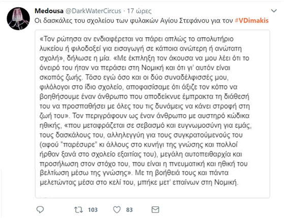 τα τρία μαθήματα στα οποία εξετάστηκε μέσα στο σωφρονιστικό ίδρυμα,