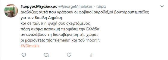 που μέμφονται τον Βασίλη Δημάκη για την πρότερη παραβατικότητά του•