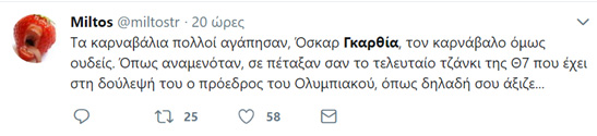 που θα μπορούσαμε να εκφράσουμε κατά τού θεατρίνου Όσκαρ Γκαρθία.