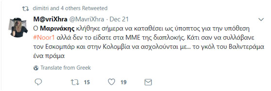 Χθες είχε κληθεί από την Εισαγγελέα Πειραιά, Ειρήνη Τζίβα -ως ύποπτος, για να δώσει ανωμοτί εξηγήσεις για το ναρκοπλοίο «Noor1»- ο Βαγγέλης Μαρινάκης.