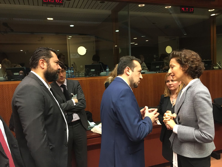 Με τη Γαλλίδα ομόλογό του, υπουργό Πολιτισμού και Επικοινωνιών, Audrey Azoulay