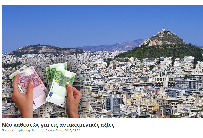 15. Επειδή, στην Παράγραφο Γ «Συμφωνία δημοσιονομικών στόχων και διαρθρωτικών μεταρρυθμίσεων» του Μνημονίου Συνεννόησης για τριετές πρόγραμμα του Ευρωπαϊκού Μηχανισμού Σταθερότητας, που κυρώθηκε με το άρθρο 3 του ν. 4336/2015 (Α΄ 94), ορίζεται, στο Κεφάλαιο 2.2 «Μεταρρυθμίσεις φορολογικής πολιτικής» ότι «iii. … Έως τον Οκτώβριο του 2015, η κυβέρνηση: α) … η) ενόψει τυχόν αναθεώρησης των ζωνών αντικειμενικών αξιών για τα ακίνητα, θα προσαρμόσει τους φορολογικούς συντελεστές επί της ακίνητης περιουσίας, εφόσον κρίνεται αναγκαίο, για να διασφαλιστεί ότι τα έσοδα από το φόρο ακίνητης περιουσίας το 2016 θα ανέλθουν τουλάχιστον στο ποσό των 2,65 δισεκατομμυρίων ευρώ, και θα προσαρμόσει την εναλλακτική ελάχιστη φορολογία επί του εισοδήματος φυσικών προσώπων» και ότι «v. Φόρος ακίνητης περιουσίας. Έως τον Σεπτέμβριο του 2016, οι αρχές θα εναρμονίσουν όλες τις αντικειμενικές αξίες ακινήτων με τις τιμές της αγοράς, με ισχύ από τον Ιανουάριο του 2017. Μέχρι εκείνη την ημερομηνία, θα διασταυρώσουν το σύνολο των ιδιοκτησιακών συμφερόντων με τα στοιχεία για το σύνολο των ατομικών ιδιοκτησιών στο κτηματολόγιο (βασικό παραδοτέο)».