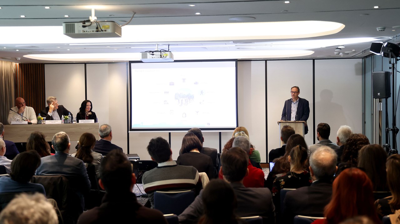 Από αριστερά: Η κ. Μαριπόλα Κώτση, Προϊσταμένη Έρευνας Αγοράς, ΔΑΑ, ο κ. Stefan Merkenhof, Managing Consultant GBR Consulting, ο κ. Ευριπίδης Τζίκας, Γενικός Διευθυντής, Athens Capital Center Hotel, ο κ. Ευγένιος Βασιλικός, Γενικός Γραμματέας ΕΞΑΑΑ, ο κ. Γιάννης Παράσχης, CEO, ΔΑΑ και η κ. Ιωάννα Παπαδοπούλου, Διευθύντρια Επικοινωνίας & Μάρκετινγκ, ΔΑΑ