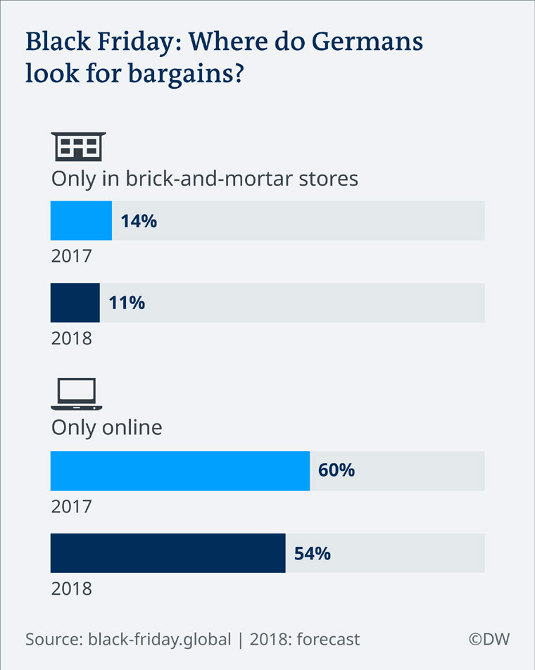 Προσφορές όπως η Black Friday γίνονται ολοένα και σημαντικότερες για το λιανικό εμπόριο στη Γερμανία. Ο ειδικός μάρκετινγκ Μάρτιν Φάσναχτ από το Οικονομικό Πανεπιστήμιο WHU είναι πεπεισμένος ότι «η γερμανικές αγορά είναι κορεσμένη και χρειάζονται τέτοιες δράσεις για να τονωθούν οι πωλήσεις». Από την άλλη πλευρά ωστόσο παραδέχεται ότι οι προσφορές αυτές είναι «δίκοπο μαχαίρι. Διασφαλίζουν μεν υψηλότερες πωλήσεις, την ίδια ώρα όμως γίνεται ολοένα δυσκολότερο για τα καταστήματα να διαθέσουν προϊόντα σε κανονικές τιμές. Οι προσφορές εθίζουν τους καταναλωτές».
