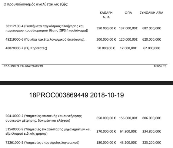 a. 38112100-4 (Συστήματα παγκόσμιας πλοήγησης και παγκόσμιου προσδιορισμού θέσης (GPS ή ισοδύναμα) 550.000,00 € χωρίς το ΦΠΑ.