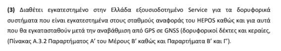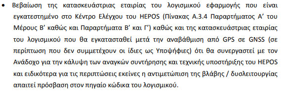 Παράλληλα, σε άλλο σημείο του διαγωνισμού αναφέρεται πως η αναβάθμιση των συστημάτων GPS των σταθμών αναφοράς (δέκτες και κεραίες) επιτρέπεται να γίνει με παράλληλη απόσυρση των υφιστάμενων συστημάτων GPS, με εξαίρεση πέντε συστήματα GPS που πρέπει να παραμείνουν ιδιοκτησία της Αναθέτουσας Αρχής.