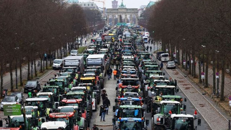 Περισσότερα από 3.000 τρακτέρ, 2.000 φορτηγά και 10.000 άτομα έχουν συγκεντρωθεί στην Πύλη του Βραδεμβούργου για το σημερινό συλλαλητήριο, με το οποίο κορυφώνεται η «εβδομάδα δράσης» του αγροτικού κινήματος, το οποίο απαιτεί ακύρωση της σχεδιαζόμενης κατάργησης της επιδότησης στο αγροτικό πετρέλαιο.