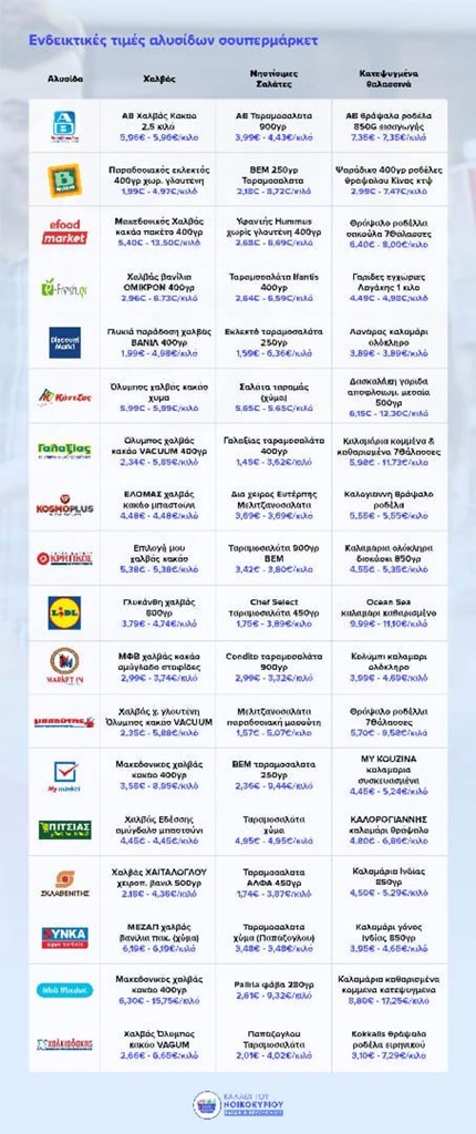 Κάρτα με τις τιμές των σαρακοστιανών από όλες τις αλυσίδες σούπερ μάρκετ ετοίμασε το υπουργείο Ανάπτυξης και Επενδύσεων.