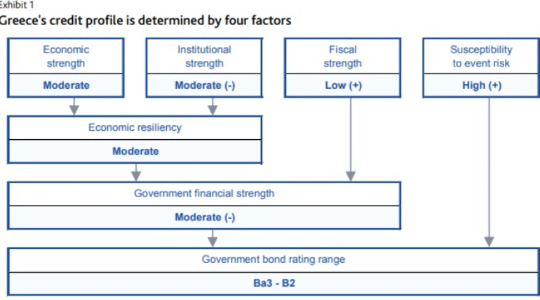 Επιβεβαιώνει την πορεία βελτίωσης της ελληνικής οικονομίας ο οίκος Moody’s, όμως την ίδια στιγμή δεν φαίνεται διατεθειμένος να προχωρήσει σε κάποια άμεση αναβάθμιση. Μάλιστα, επισημαίνει ότι οι αξιολογήσεις του θα βρίσκονται στην κατηγορία «Β» για τα επόμενα χρόνια, αν δεν υπάρξει σημαντική περαιτέρω βελτίωση στην ισχυροποίηση των θεσμών και στις οικονομικές επιδόσεις.
