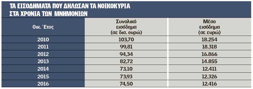 Το 65% των μισθωτών δήλωσε ότι το 2014 είχε εισοδήματα κάτω των 12.000 ευρώ έναντι 46% το 2011, ενώ το 78% των ελεύθερων επαγγελματιών ή σχεδόν οκτώ στους δέκα δήλωσαν εισοδήματα κάτω των 12.000 ευρώ, ενώ το 2011 το ποσοστό των ελεύθερων επαγγελματιών με ετήσια εισοδήματα έως 12.000 ευρώ ήταν το 64% του συνόλου.
