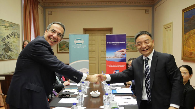 Η συνεργασία επισημοποιήθηκε με την υπογραφή σχετικού μνημονίου συνεργασίας στις 7 Νοεμβρίου 2016 από τους κ.κ. Shi Wenchao, Προέδρου της China UnionPay και Λεωνίδα Φραγκιαδάκη Διευθύνοντα Συμβούλου της Εθνικής Τράπεζας.
