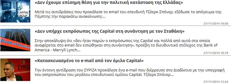 Υπενθυμίζεται ότι η Capital Group είναι ο οίκος στο οποίο ανήκει ο Joerg Sponer, ο οποίος έστειλε το e-mail μετά τις επαφές στελεχών του ΣΥΡΙΖΑ στο Λονδίνο.