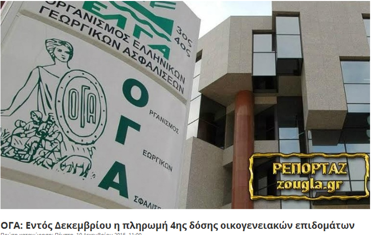 – Η δ΄ δόση του οικογενειακού επιδόματος του ΟΓΑ (Ενιαίο Επίδομα Στήριξης Τέκνων) ενδεχομένως να δοθεί μεταξύ 22 και 29 Δεκεμβρίου.