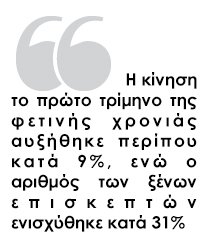 Όπως εξηγεί, η κίνηση το πρώτο τρίμηνο της φετινής χρονιάς αυξήθηκε περίπου κατά 9%, ενώ ο αριθμός των ξένων επισκεπτών ενισχύθηκε κατά 31%.