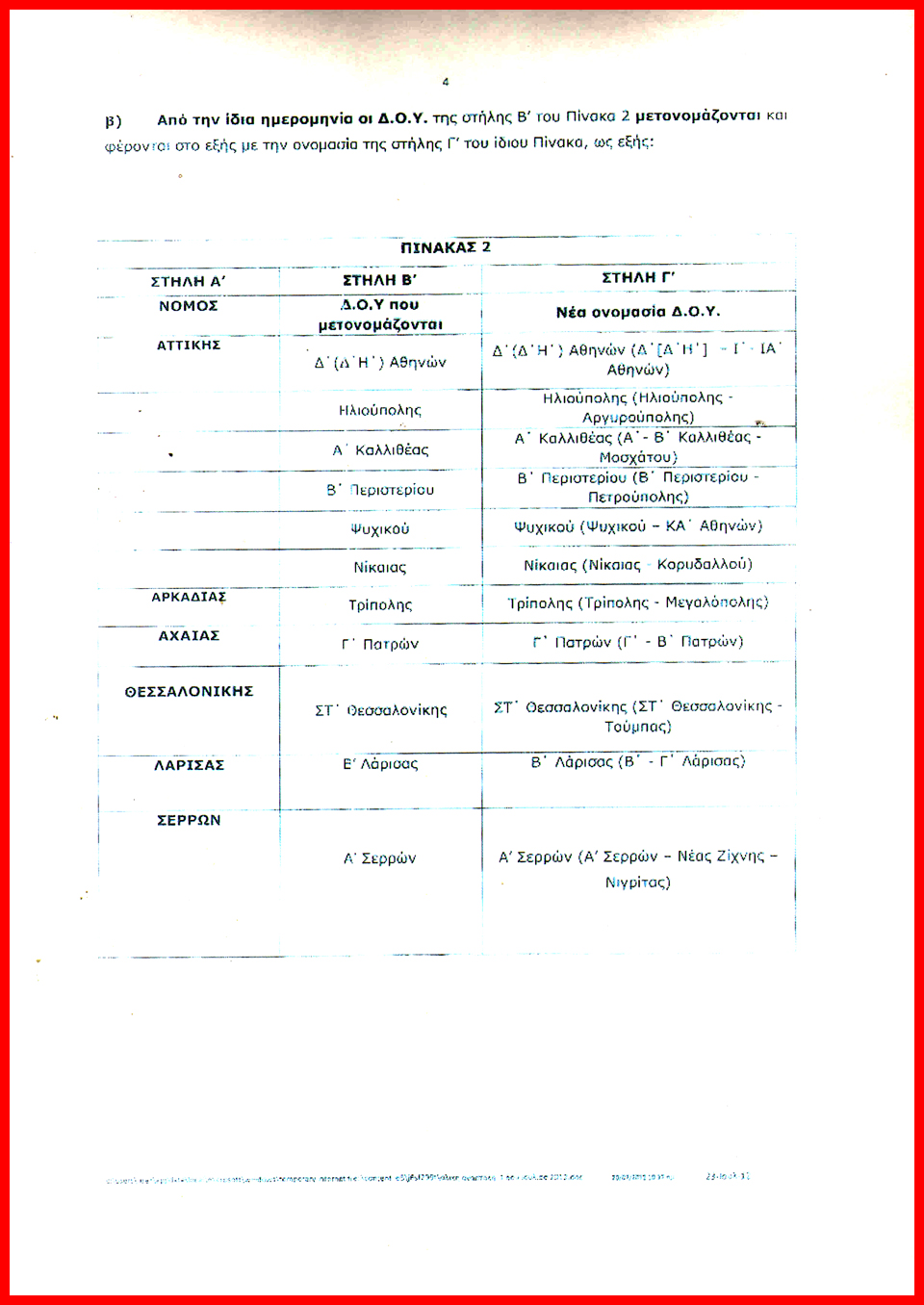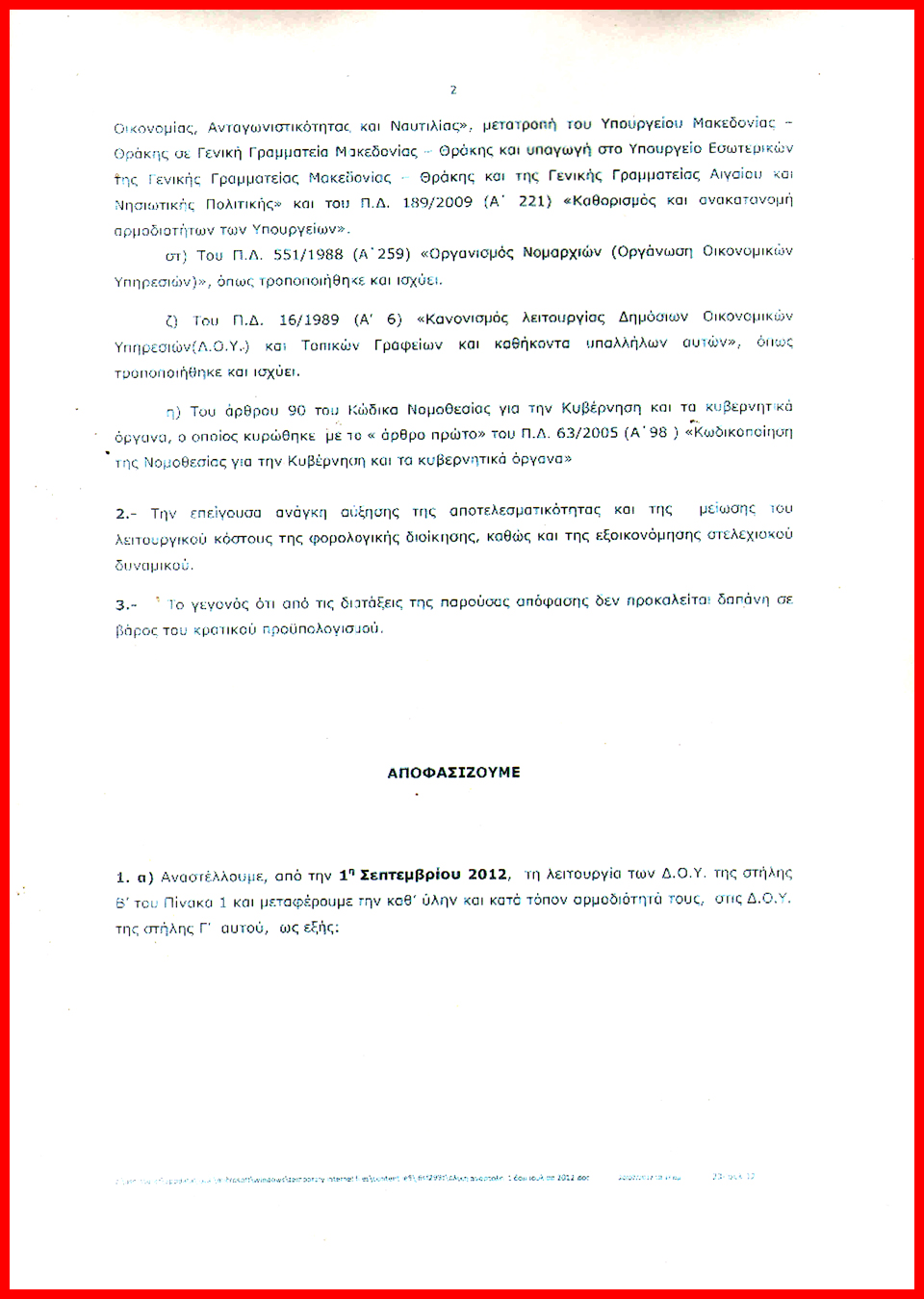 Σύμφωνα με αυτό, από 1η Σεπτεμβρίου 2012 πρόκειται να ανασταλεί η λειτουργία των εξής Δ.Ο.Υ: