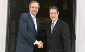 Ο κ. Αναστασιάδης εκφράζει τις θερμές ευχαριστίες και την ευγνωμοσύνη του ιδίου και του κυπριακού ελληνισμού για την αμέριστη συμπαράσταση του πολιτικού κόσμου και του λαού της Ελλάδας στις δύσκολες ώρες που διέρχεται η Κύπρος και επιθυμεί να ενημερώσει τον κυπριακό λαό για τη συνεχή και στενή συνεργασία που διέκρινε τις σχέσεις των δύο πλευρών από το Eurogroup της 15ης Μαρτίου μέχρι την οριστική διευθέτηση των παραρτημάτων των κυπριακών τραπεζών στην Ελλάδα.