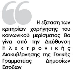 Η εξέταση των κριτηρίων χορήγησης του κοινωνικού μερίσματος θα γίνει από την Διεύθυνση Ηλεκτρονικής Διακυβέρνησης της Γενικής Γραμματείας Δημοσίων Εσόδων, χωρίς να απαιτείται η εκ νέου υποβολή δήλωσης από τους αιτούντες. Μετά την πάροδο της προθεσμίας υποβολής των δηλώσεων φορολογίας εισοδήματος φυσικών προσώπων οικονομικού έτους 2014, οι αιτήσεις που απορρίφθηκαν επανεξετάζονται αυτεπάγγελτα από τη Διεύθυνση Ηλεκτρονικής Διακυβέρνησης της Γενικής Γραμματείας Δημοσίων Εσόδων με βάση τα εισοδήματα των εμπρόθεσμα υποβληθεισών δηλώσεων φορολογίας εισοδήματος οικονομικού έτους 2014, προς το σκοπό χορήγησης του κοινωνικού μερίσματος.
