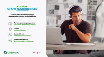 Για τρίτη συνεχή χρονιά επιστρέφει το δωρεάν εκπαιδευτικό πρόγραμμα ψηφιακών δεξιοτήτων για επιχειρήσεις, COSMOTE GROW YOUR BUSINESS – Certification Program, αυτή τη φορά με τη μορφή βιντεοσκοπημένων online μαθημάτων.