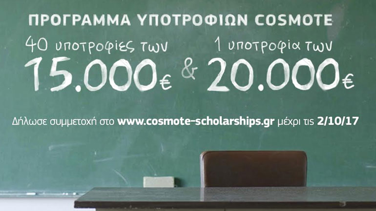 Η υποβολή αιτήσεων γίνεται αποκλειστικά μέσω της ιστοσελίδας www.cosmote-scholarships.gr, έως και τις 2 Οκτωβρίου 2017.